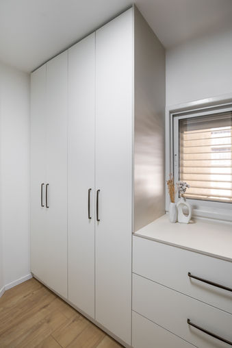 לפעמים השינוי הכי גדול מתחיל בפינות הנסתרות של הבית. בפרויקט הזה הפכנו מחסן ישן לחדר ארונות מעוצב, שיפצנו את חדר הרחצה מהיסוד ויצרנו פתרונות אחסון חכמים ואסתטיים לחלל הכביסה. הוכחה שבעזרת תכנון מדויק, גם חללי השירות יכולים להפוך למרחבים של נשימה וסדר.